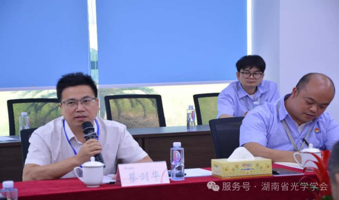 2025年5月24日,湖南省光学学会副理事长钟海荣率队,携国防科技大学、湖南大学、湘潭大学等12位专家学者,赴湖南华南光电(集团)有限责任公司开展产学研专项对接,湖南文理学院数理学院院长、光电信息集成与光学制造技术湖南省重点实验室(与华南光电共建)主任蔡剑华、副院长黎小琴、博士刘备和于涛参加了会议。